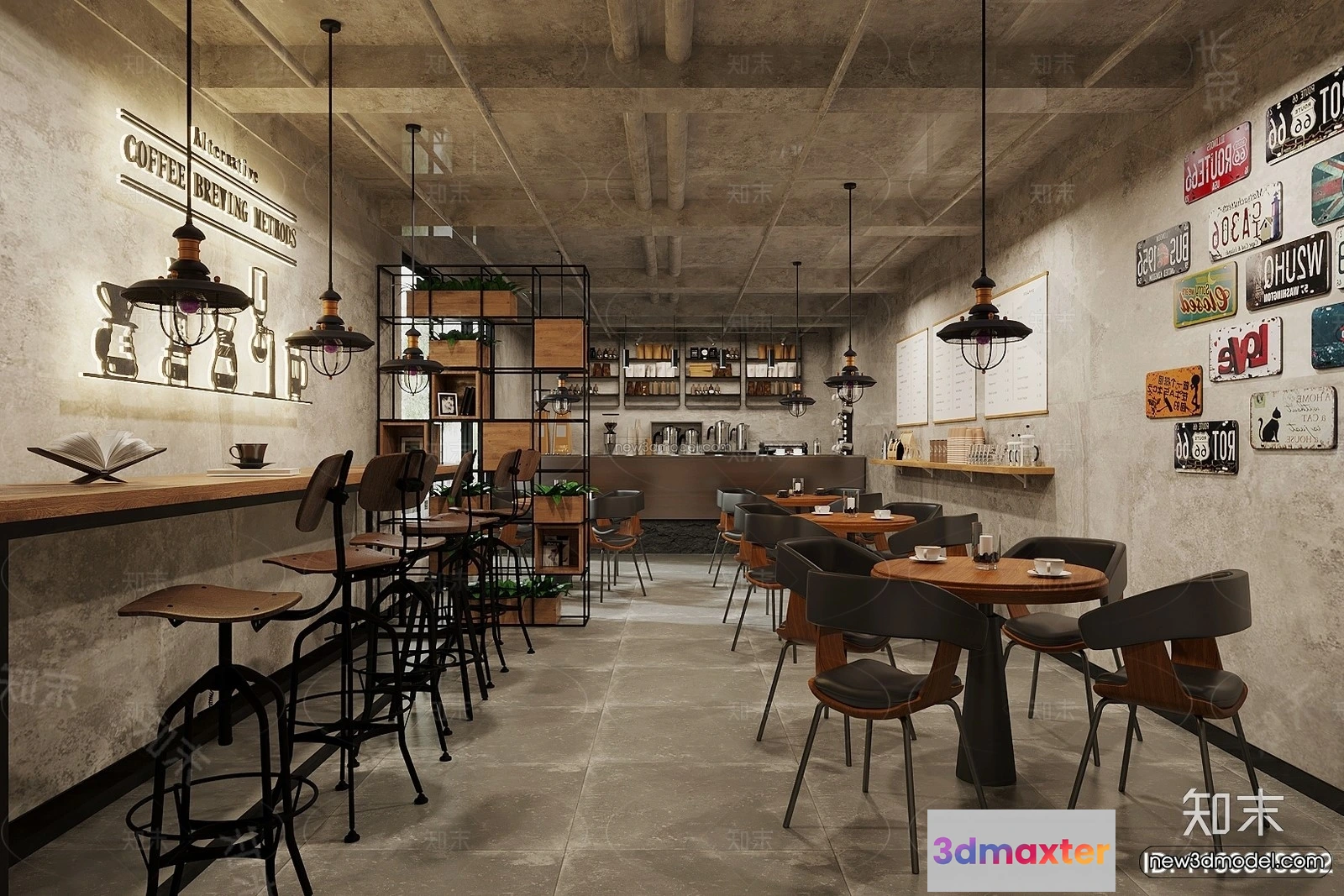 3D Models / 3D Scenes / Interior / Commercial Spaces / Modern Style Interior 3D Blocks and 3D Models – Coffee Shop 3D Scene – 857 3D Max
