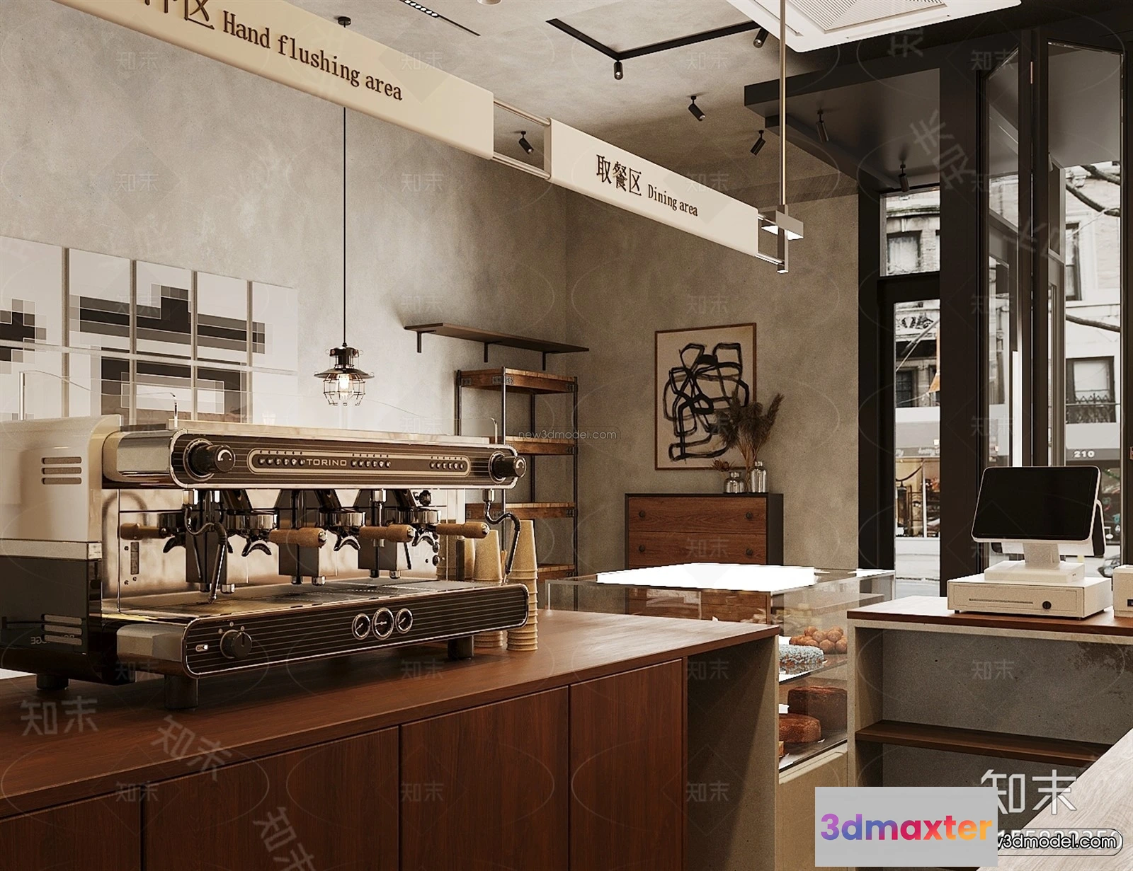 3D Models / 3D Scenes / Interior / Commercial Spaces / Modern Style Interior 3D Blocks and 3D Models – Coffee Shop 3D Scene – 860 3D Max