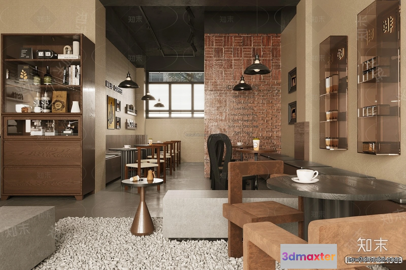 3D Models / 3D Scenes / Interior / Commercial Spaces / Modern Style Interior 3D Blocks and 3D Models – Coffee Shop 3D Scene – 862 3D Max