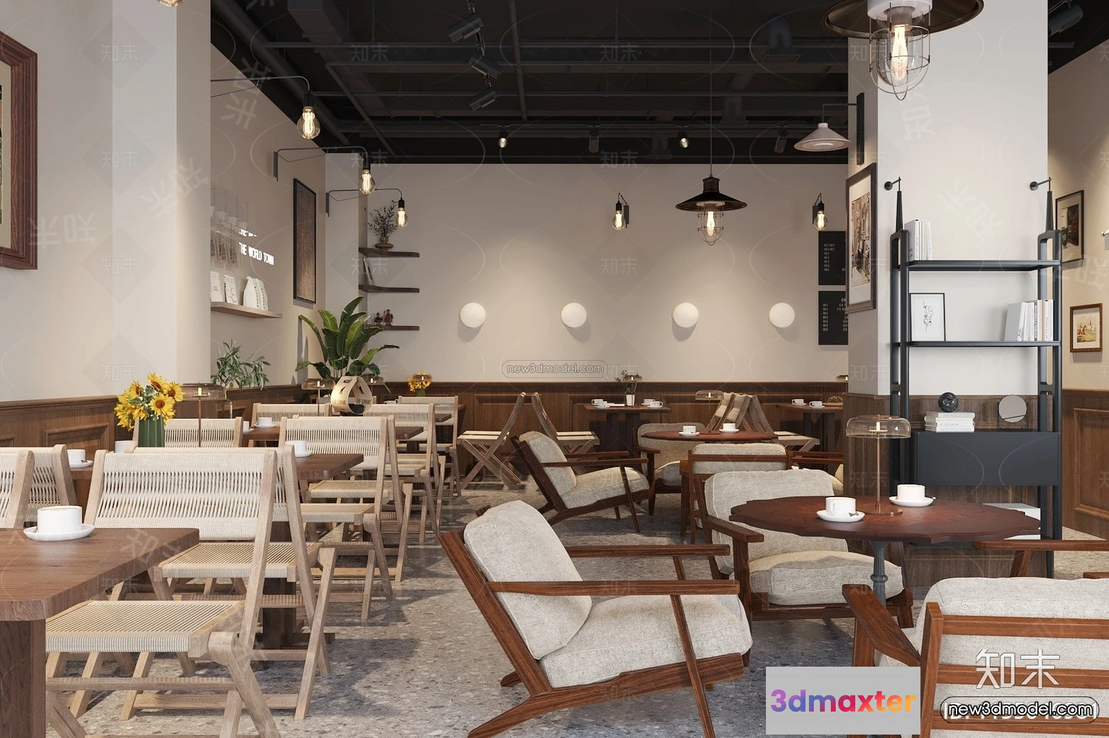 3D Models / 3D Scenes / Interior / Commercial Spaces / Modern Style Interior 3D Blocks and 3D Models – Coffee Shop 3D Scene – 863 3D Max