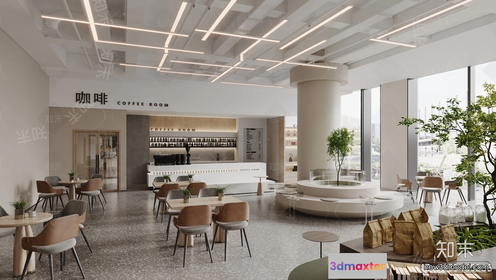 3D Models / 3D Scenes / Interior / Commercial Spaces / Modern Style Interior 3D Blocks and 3D Models – Coffee Shop 3D Scene – 865 3D Max