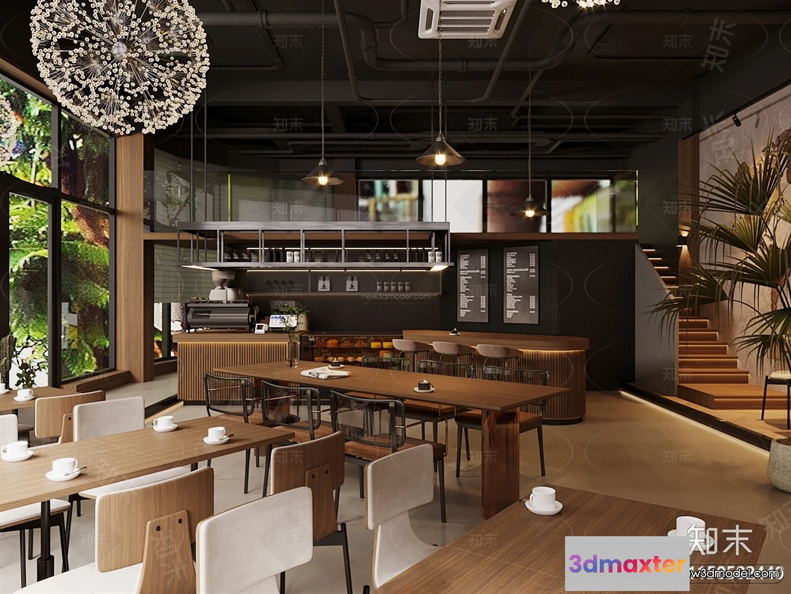 3D Models / 3D Scenes / Interior / Commercial Spaces / Modern Style Interior 3D Blocks and 3D Models – Coffee Shop 3D Scene – 871 3D Max