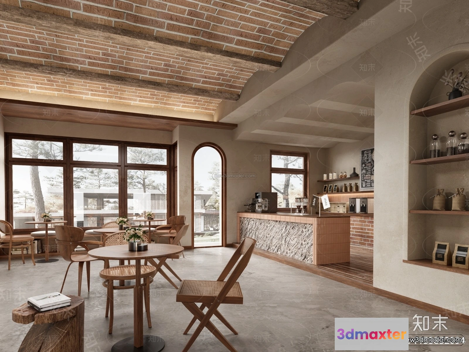 3D Models / 3D Scenes / Interior / Commercial Spaces / Modern Style Interior 3D Blocks and 3D Models – Coffee Shop 3D Scene – 873 3D Max