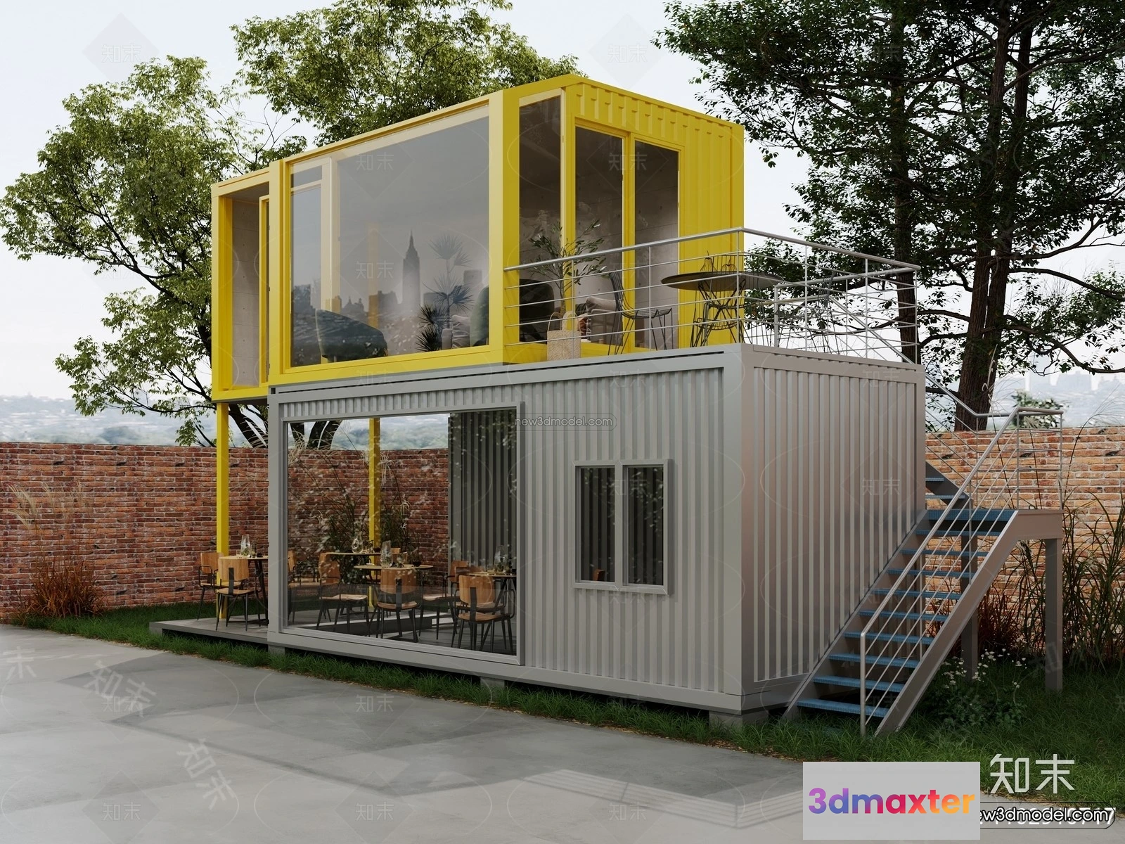 3D Models / 3D Scenes / Interior / Commercial Spaces / Modern Style Interior 3D Blocks and 3D Models – Container Coffee Shop 3D Scene – 878 3D Max