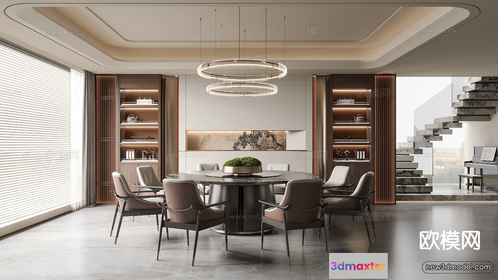3D Models / 3D Scenes / Interior / Dining Room / Modern Style Interior 3D Blocks and 3D Models – Dining Room 3D Scene – 593 3D Max