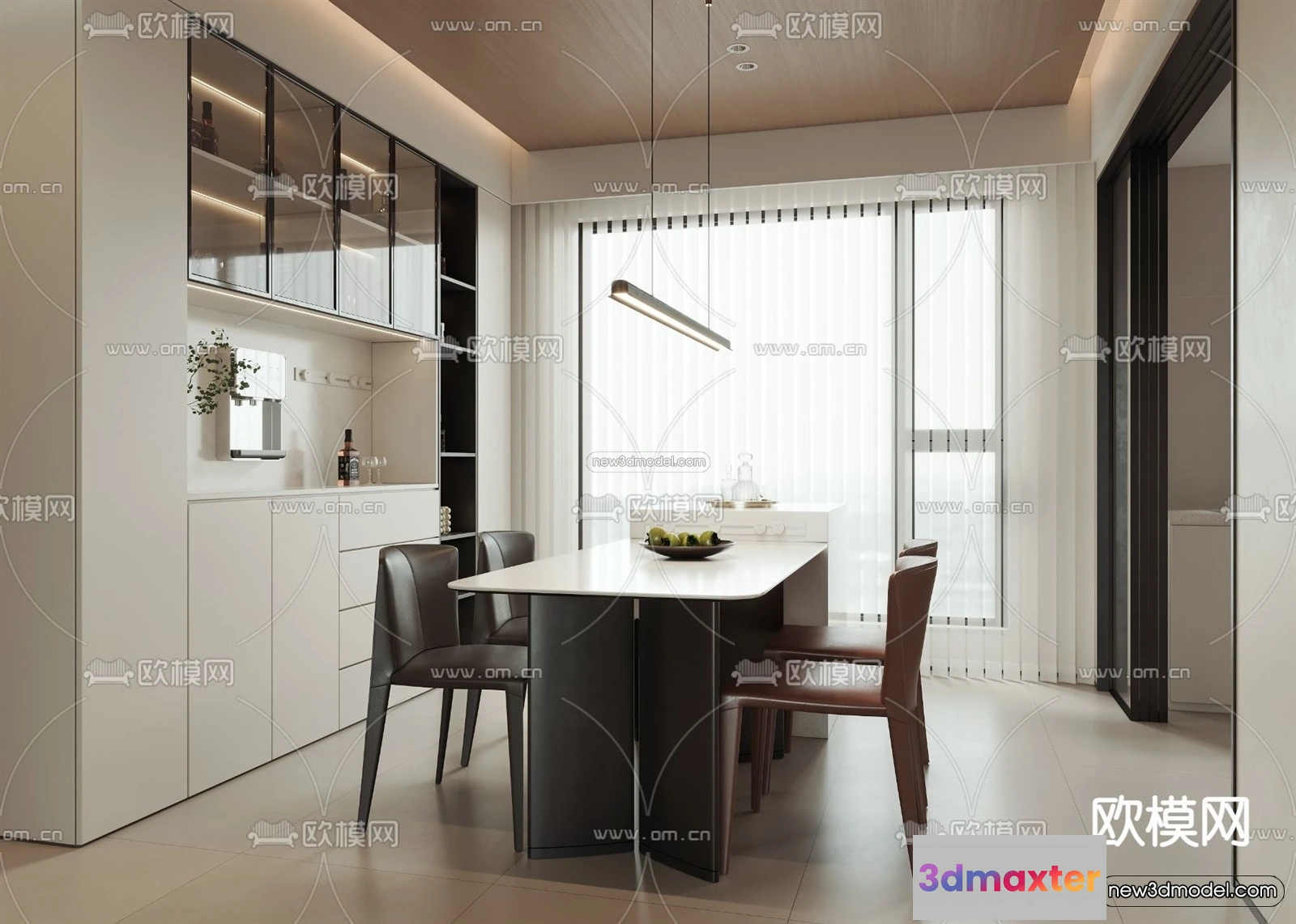 Modern Style Interior 3D Blocks and 3D Models – Dining Room 3D Scene – 597 – Dining Room 3D Model – CORONA
