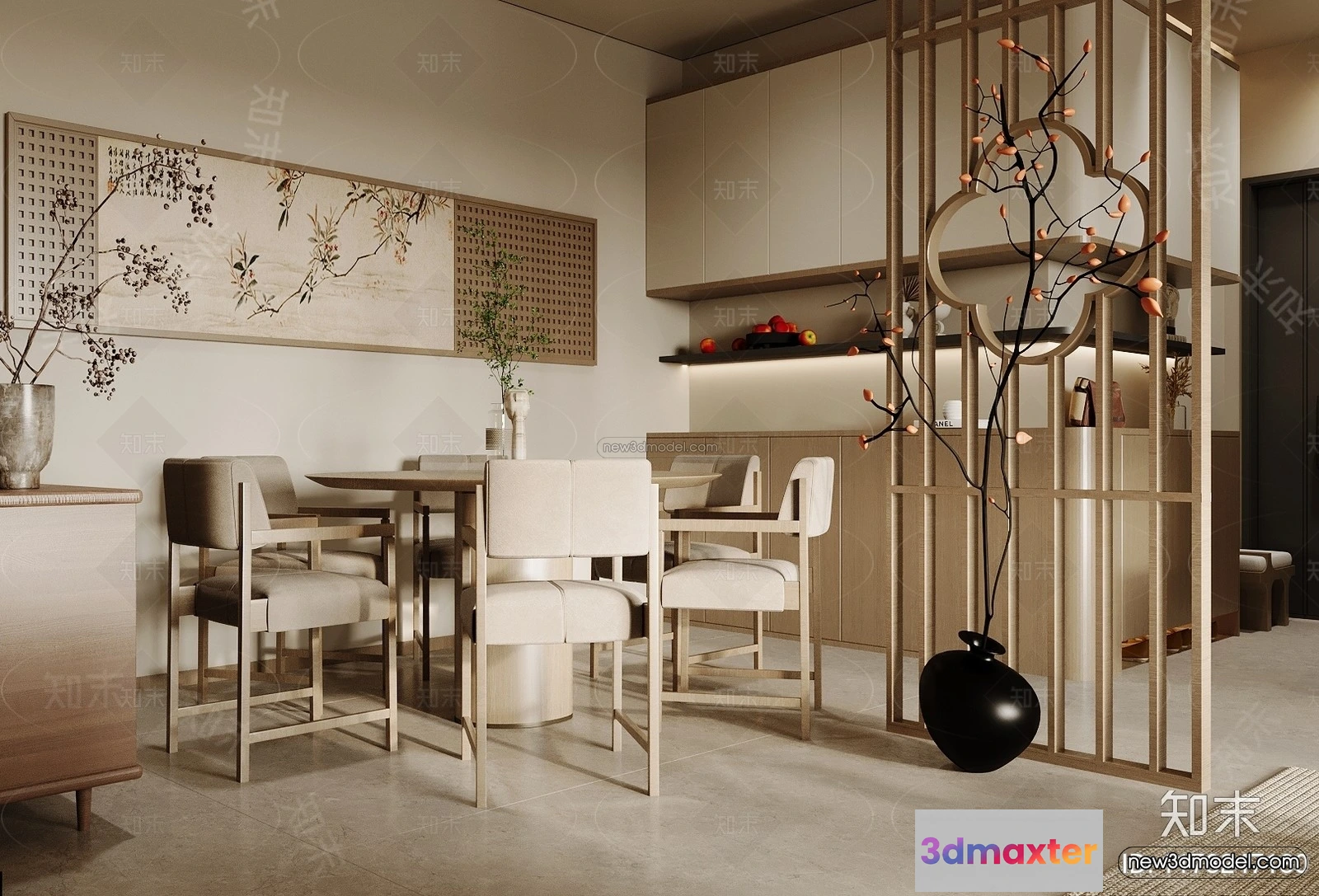 3D Models / 3D Scenes / Interior / Dining Room / Modern Style Interior 3D Blocks and 3D Models – Dining Room 3D Scene – 620 3D Max