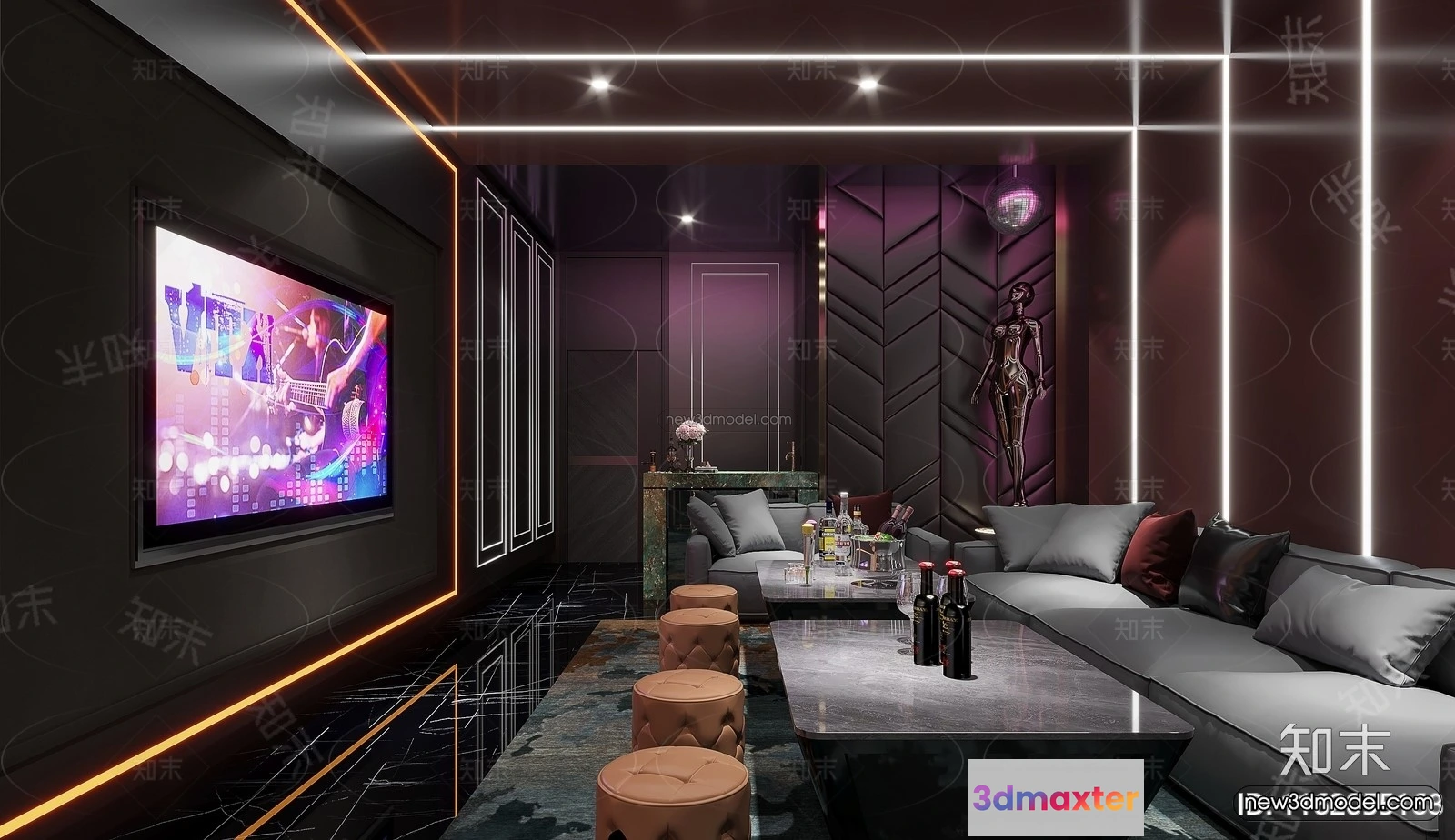 3D Models / 3D Scenes / Interior / Commercial Spaces / Modern Style Interior 3D Blocks and 3D Models – KTV 3D Scene – 751 3D Max