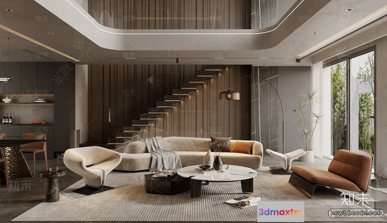 Modern Style Interior 3D Blocks and 3D Models – Living Room 3D Scene – 045 – Living room 3D Model – CORONA