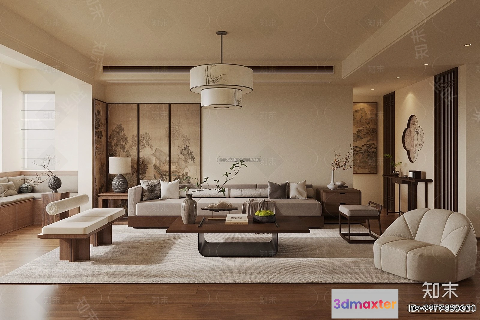 3D Models / 3D Scenes / Interior / Living Room / Modern Style Interior 3D Blocks and 3D Models – Living Room 3D Scene – 048 3D Max