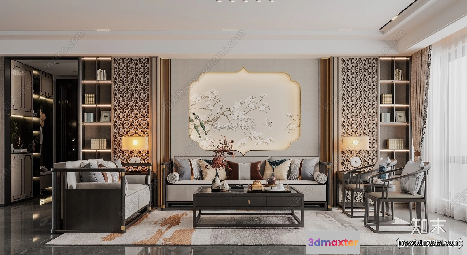 3D Models / 3D Scenes / Interior / Living Room / Modern Style Interior 3D Blocks and 3D Models – Living Room 3D Scene – 155 3D Max