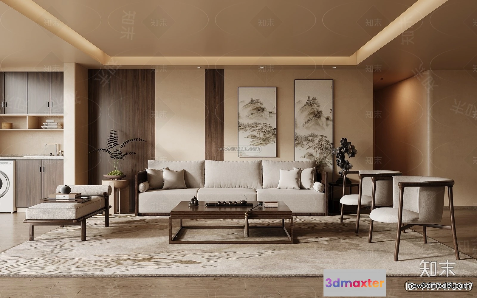 3D Models / 3D Scenes / Interior / Living Room / Modern Style Interior 3D Blocks and 3D Models – Living Room 3D Scene – 263 3D Max