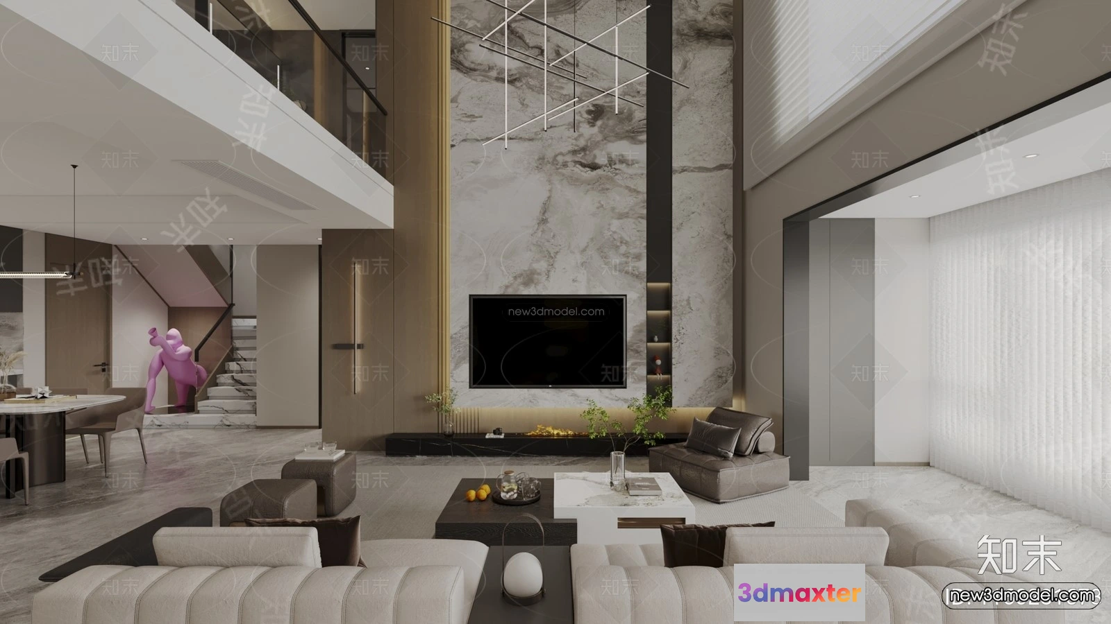 Modern Style Interior 3D Blocks and 3D Models – Living Room 3D Scene – 337 – Living room 3D Model – CORONA