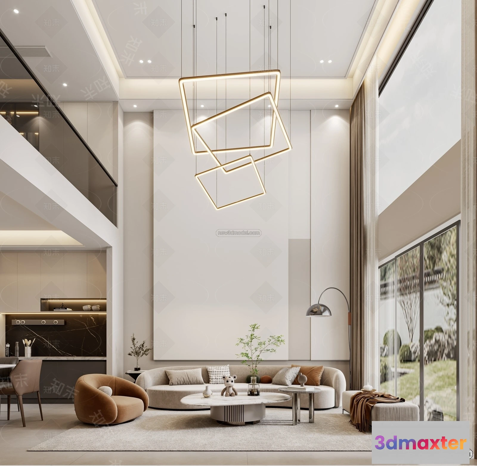 Modern Style Interior 3D Blocks and 3D Models – Living Room 3D Scene – 355 – Living room 3D Model – CORONA