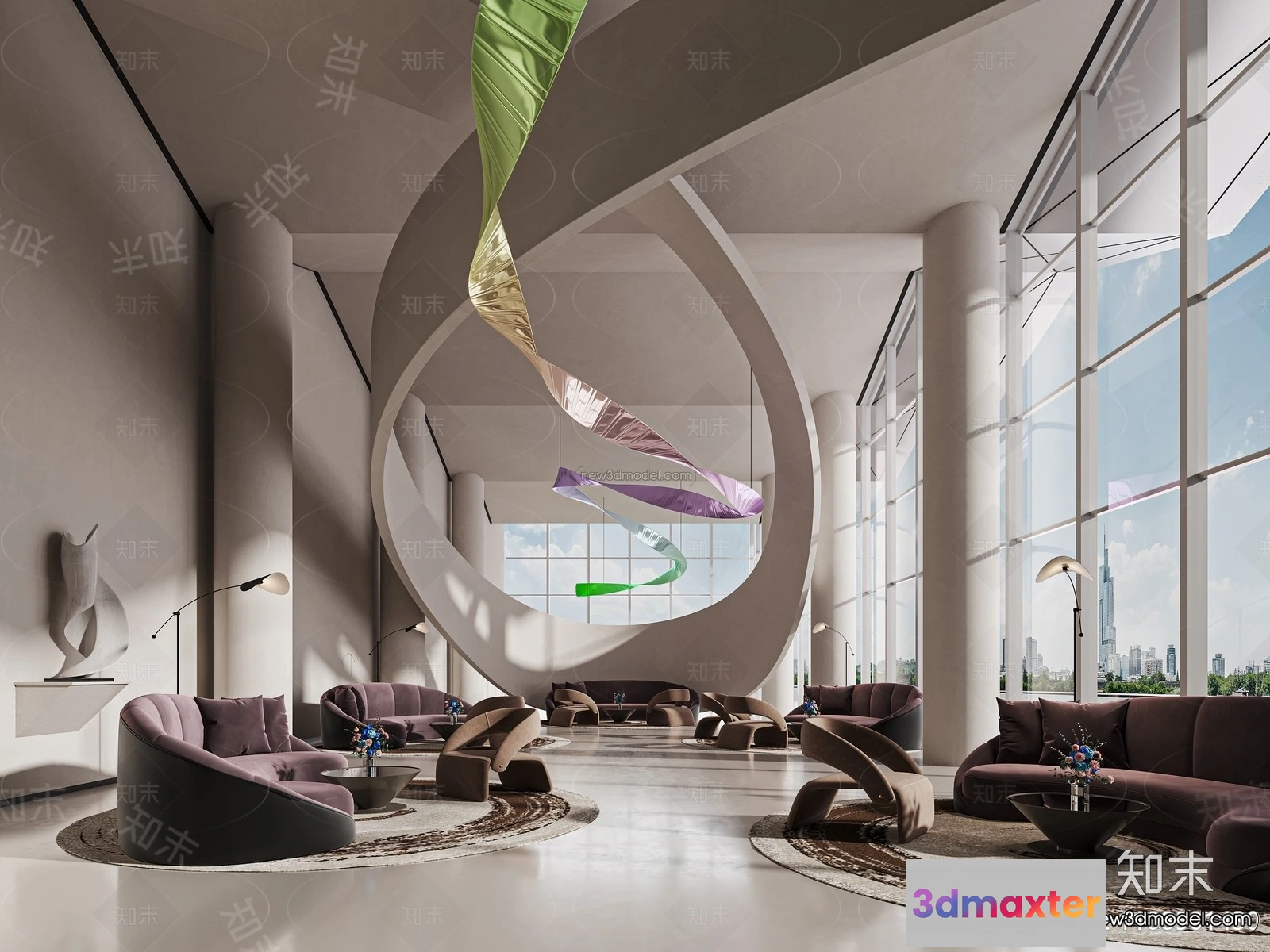 3D Models / 3D Scenes / Interior / Commercial Spaces / Modern Style Interior 3D Blocks and 3D Models – Lobby 3D Scene – 899 3D Max