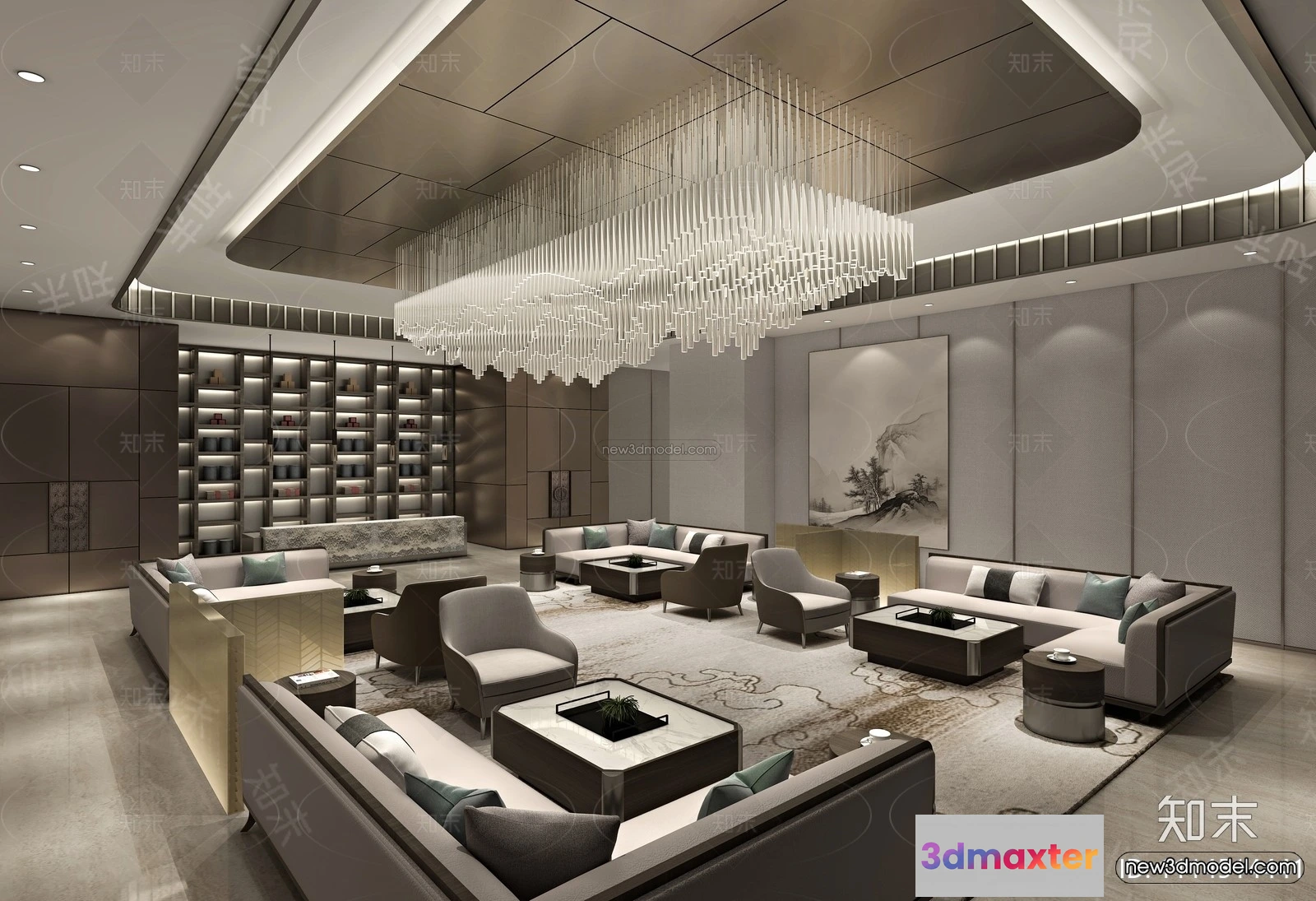 3D Models / 3D Scenes / Interior / Commercial Spaces / Modern Style Interior 3D Blocks and 3D Models – Lobby 3D Scene – 901 3D Max