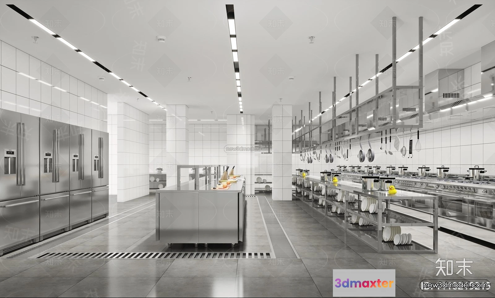 3D Models / 3D Scenes / Interior / Commercial Spaces / Modern Style Interior 3D Blocks and 3D Models – Restaurant Kitchen 3D Scene – 898 3D Max