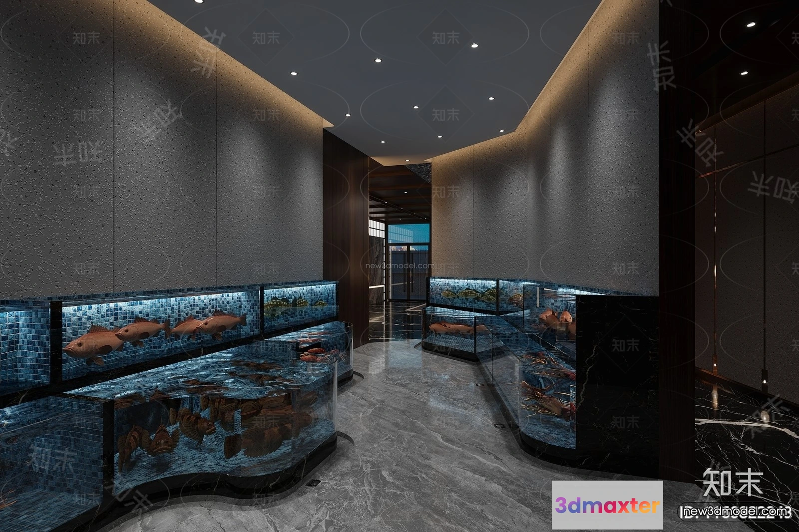 3D Models / 3D Scenes / Interior / Commercial Spaces / Modern Style Interior 3D Blocks and 3D Models – Seafood Restaurant 3D Scene – 1024 3D Max