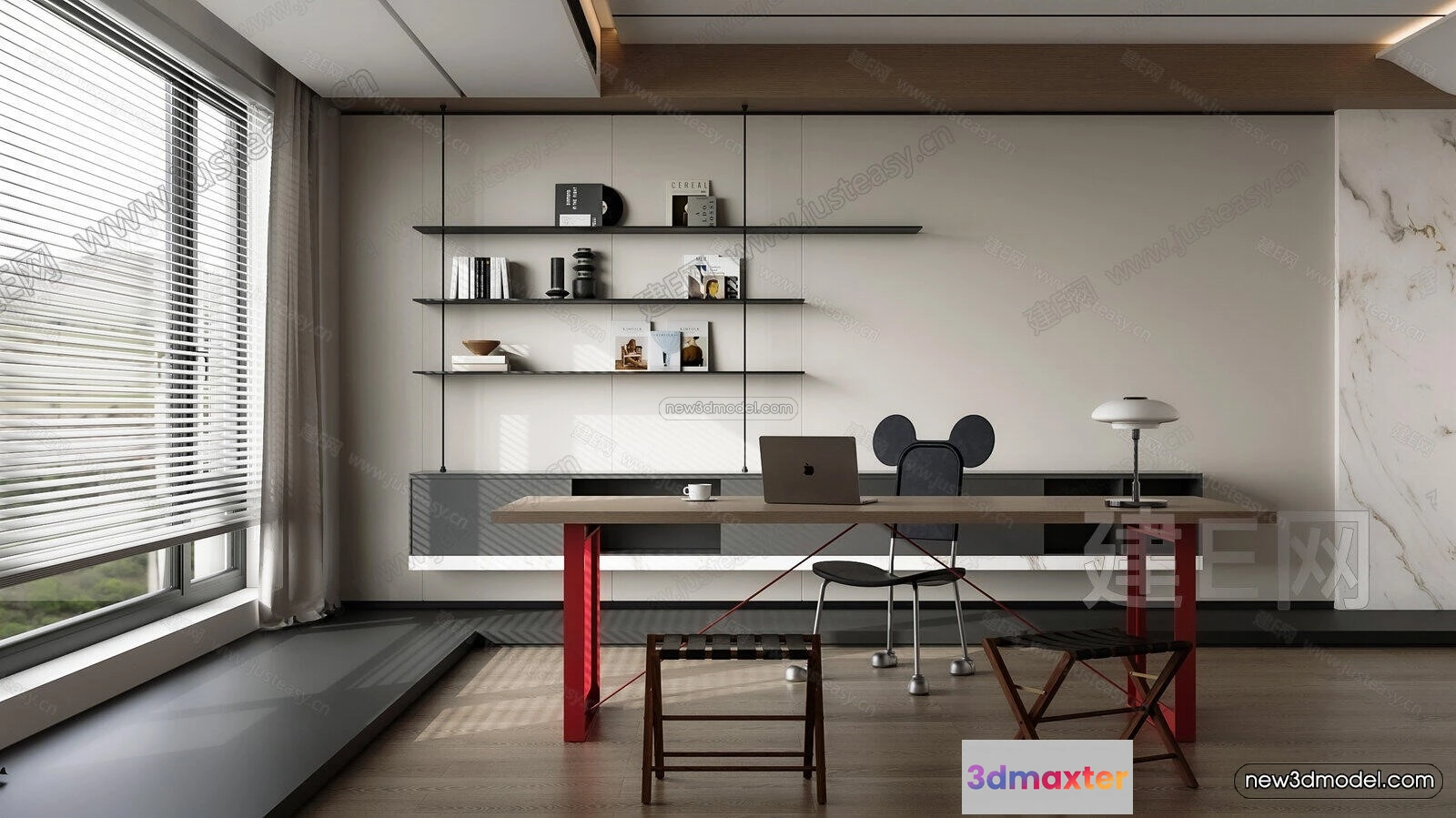 - Name: Modern Style Interior 3D Blocks and 3D Models – Study Room 3D Scene – 688