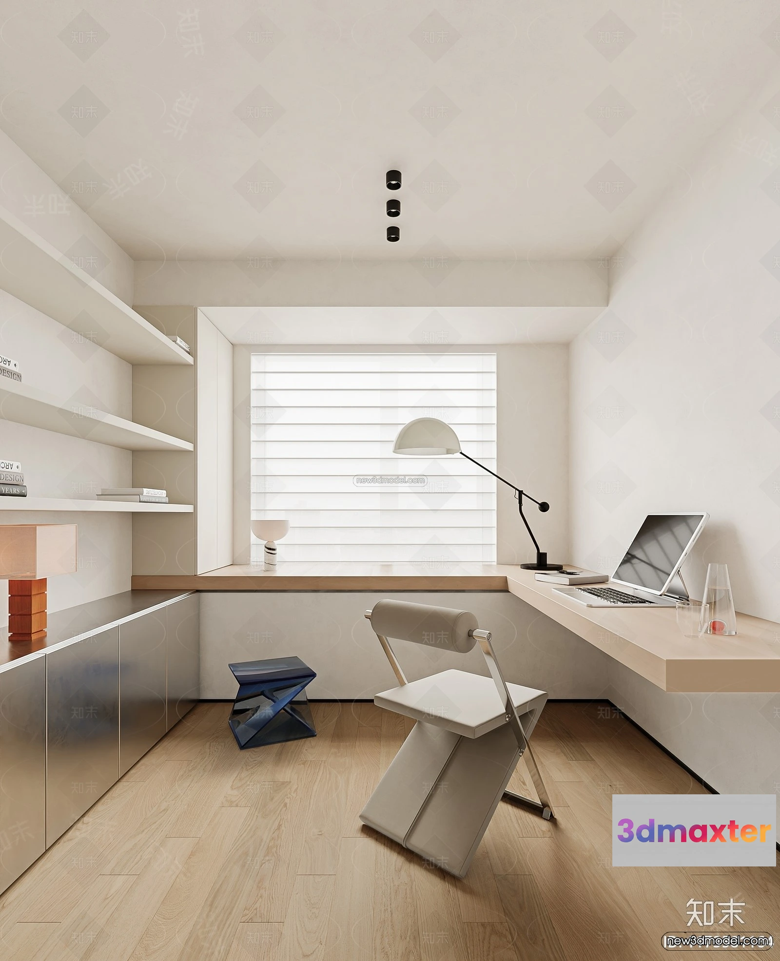 Modern Style Interior 3D Blocks and 3D Models – Study Room 3D Scene – 695 3D Max