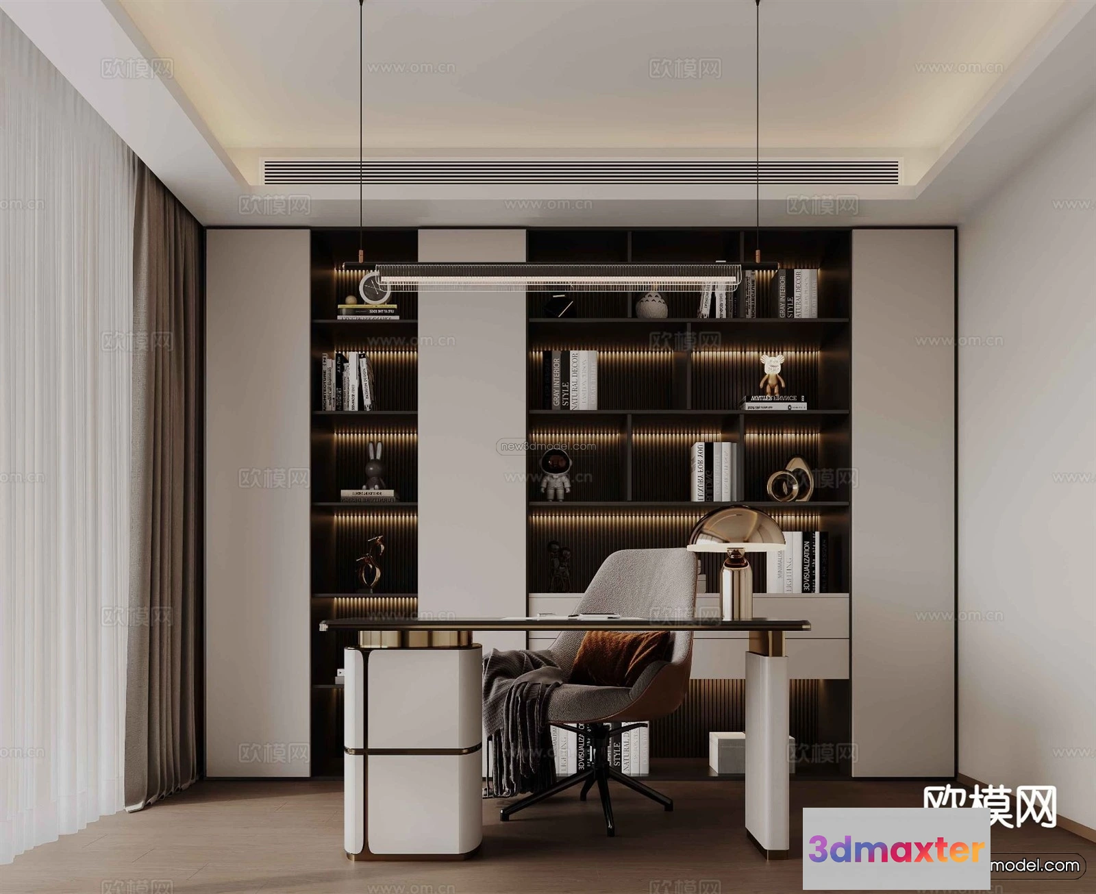Modern Style Interior 3D Blocks and 3D Models – Study Room 3D Scene – 700 – Study Room 3D Model – CORONA
