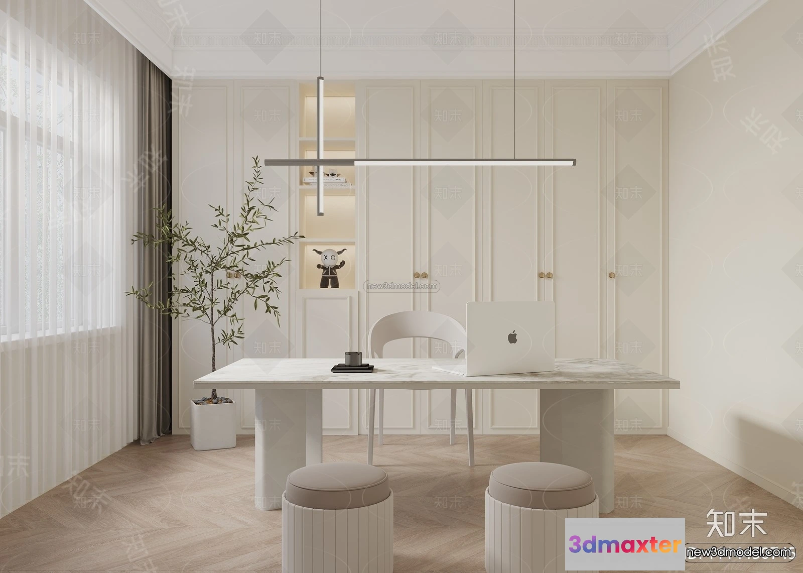 - Name: Modern Style Interior 3D Blocks and 3D Models – Study Room 3D Scene – 701
