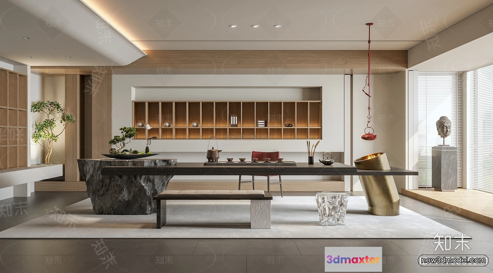 Modern Style Interior 3D Blocks and 3D Models – Tearoom 3D Scene – 710 – Tea Room 3D Model – CORONA