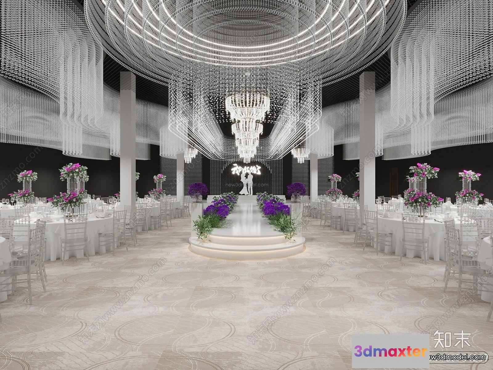 3D Models / 3D Scenes / Interior / Commercial Spaces / Modern Style Interior 3D Blocks and 3D Models – Wedding Hall 3D Scene – 913 3D Max