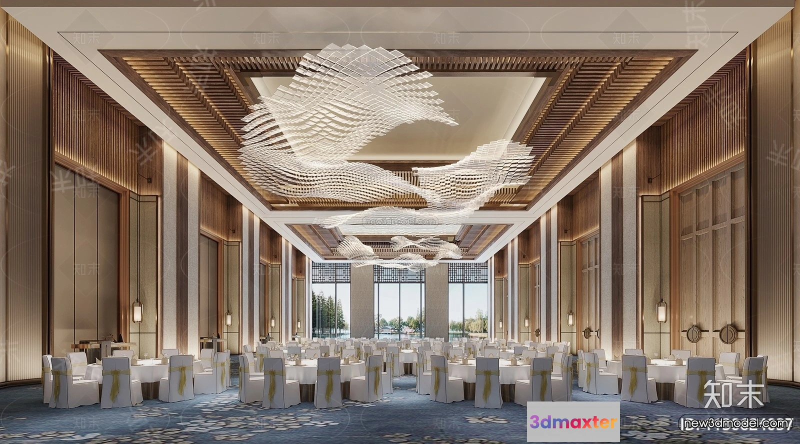 3D Models / 3D Scenes / Interior / Commercial Spaces / Modern Style Interior 3D Blocks and 3D Models – Wedding Hall 3D Scene – 917 3D Max