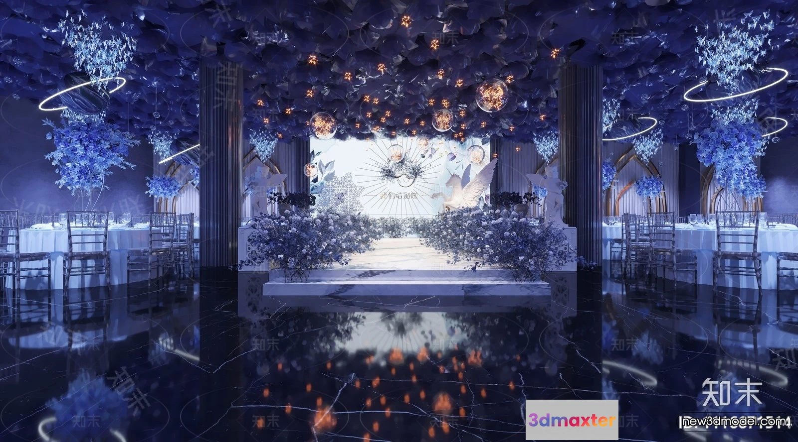 3D Models / 3D Scenes / Interior / Commercial Spaces / Modern Style Interior 3D Blocks and 3D Models – Wedding Hall 3D Scene – 919 3D Max