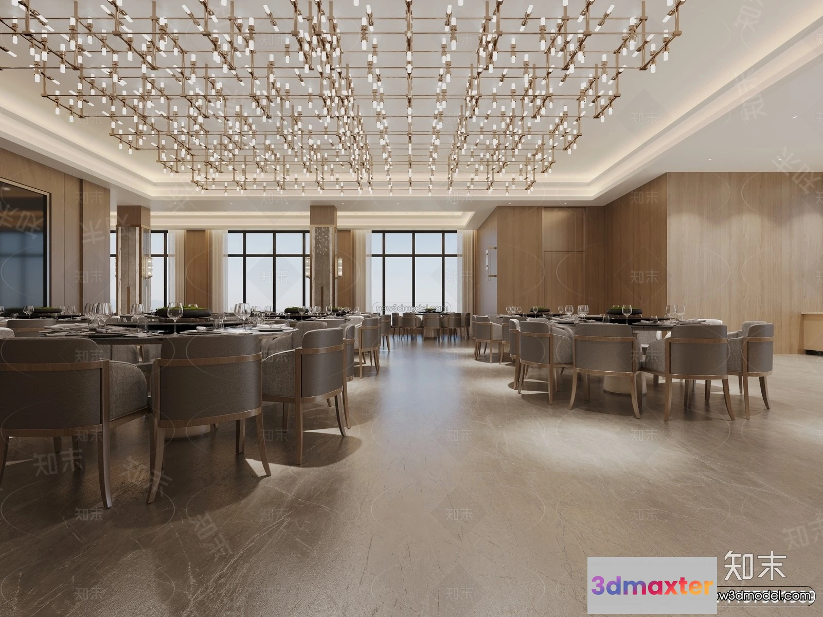 3D Models / 3D Scenes / Interior / Commercial Spaces / Modern Style Interior 3D Blocks and 3D Models – Wedding Hall 3D Scene – 921 3D Max