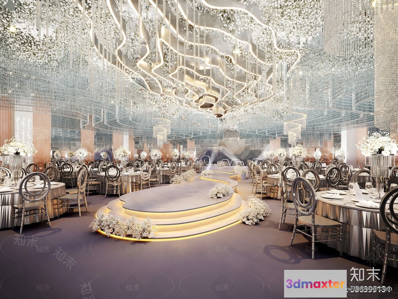 3D Models / 3D Scenes / Interior / Commercial Spaces / Modern Style Interior 3D Blocks and 3D Models – Wedding Hall 3D Scene – 922 3D Max