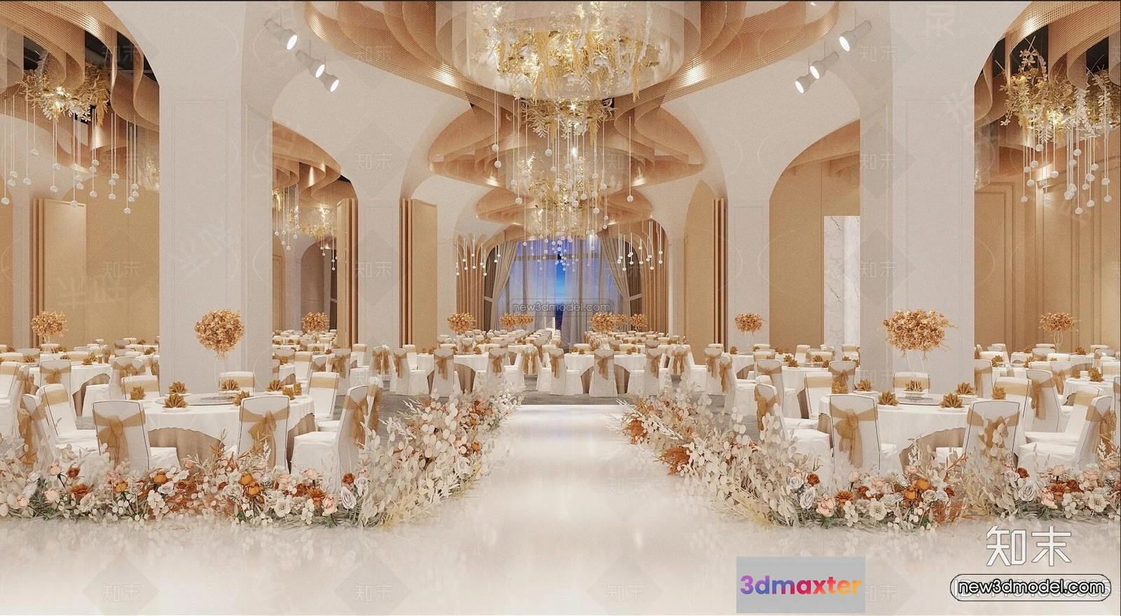 Modern Style Interior 3D Blocks and 3D Models – Wedding Hall 3D Scene – 924 – Commercial Spaces 3D Model – CORONA