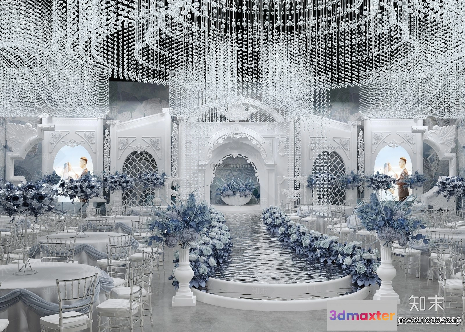 Modern Style Interior 3D Blocks and 3D Models – Wedding Hall 3D Scene – 935 – Commercial Spaces 3D Model – CORONA