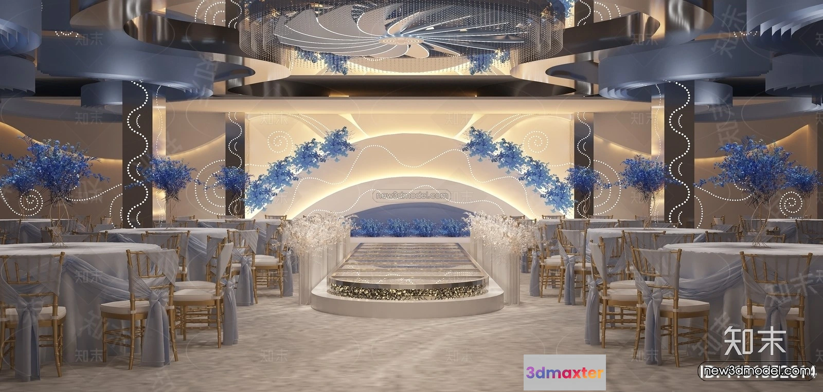 3D Models / 3D Scenes / Interior / Commercial Spaces / Modern Style Interior 3D Blocks and 3D Models – Wedding Hall 3D Scene – 947 3D Max