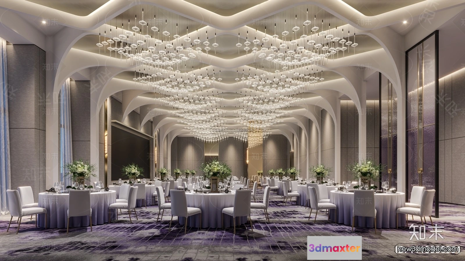 Modern Style Interior 3D Blocks and 3D Models – Wedding Hall 3D Scene – 949 – Commercial Spaces 3D Model – CORONA