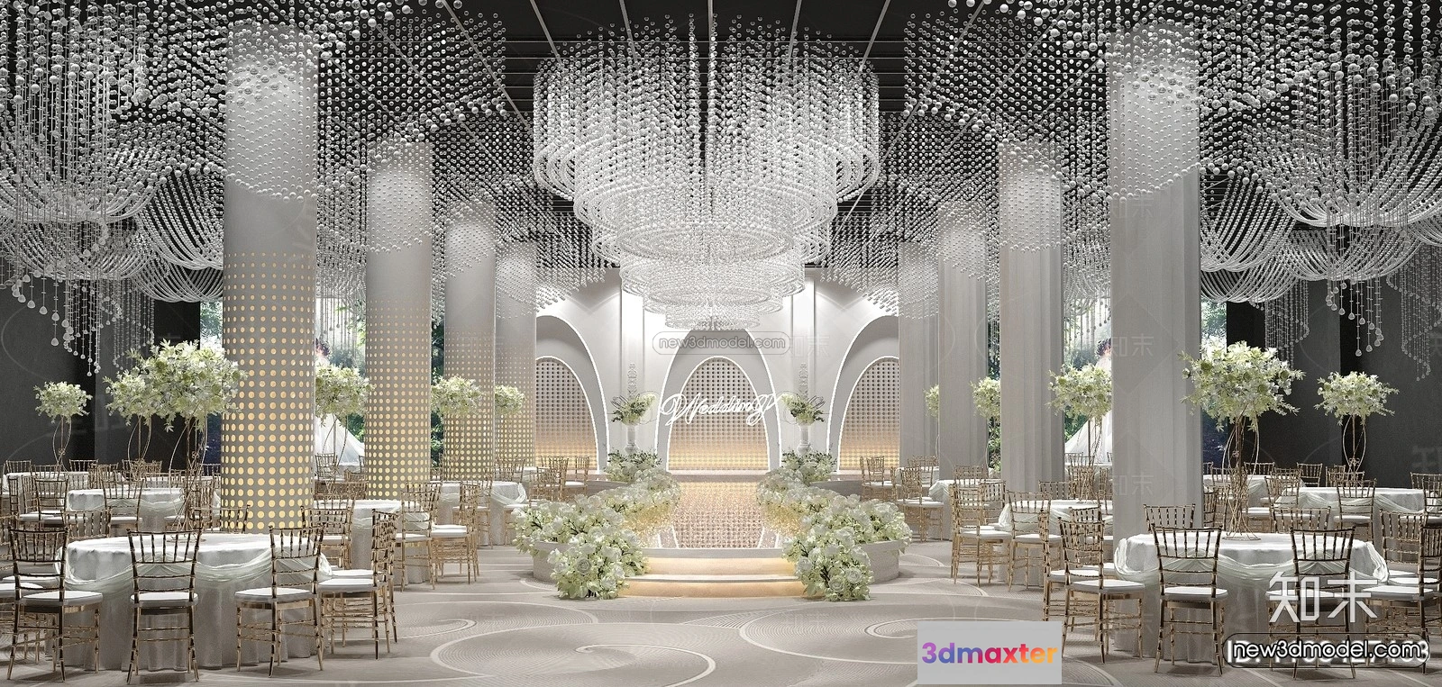 3D Models / 3D Scenes / Interior / Commercial Spaces / Modern Style Interior 3D Blocks and 3D Models – Wedding Hall 3D Scene – 960 3D Max