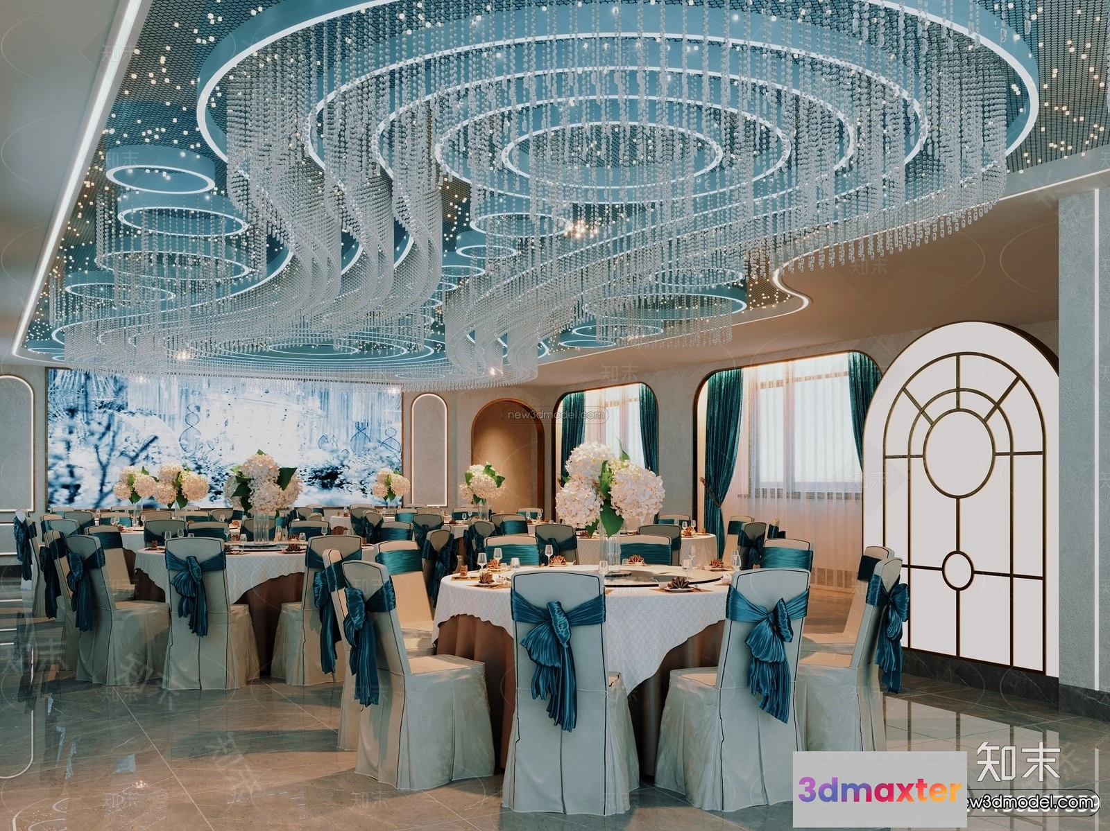 Modern Style Interior 3D Blocks and 3D Models – Wedding Hall 3D Scene – 961 – Commercial Spaces 3D Model – CORONA