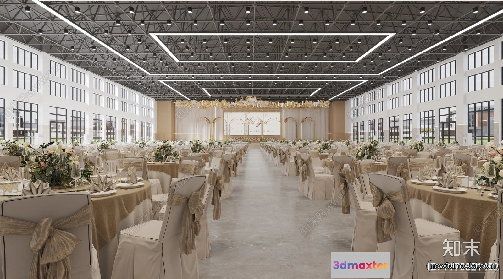 3D Models / 3D Scenes / Interior / Commercial Spaces / Modern Style Interior 3D Blocks and 3D Models – Wedding Hall 3D Scene – 962 3D Max