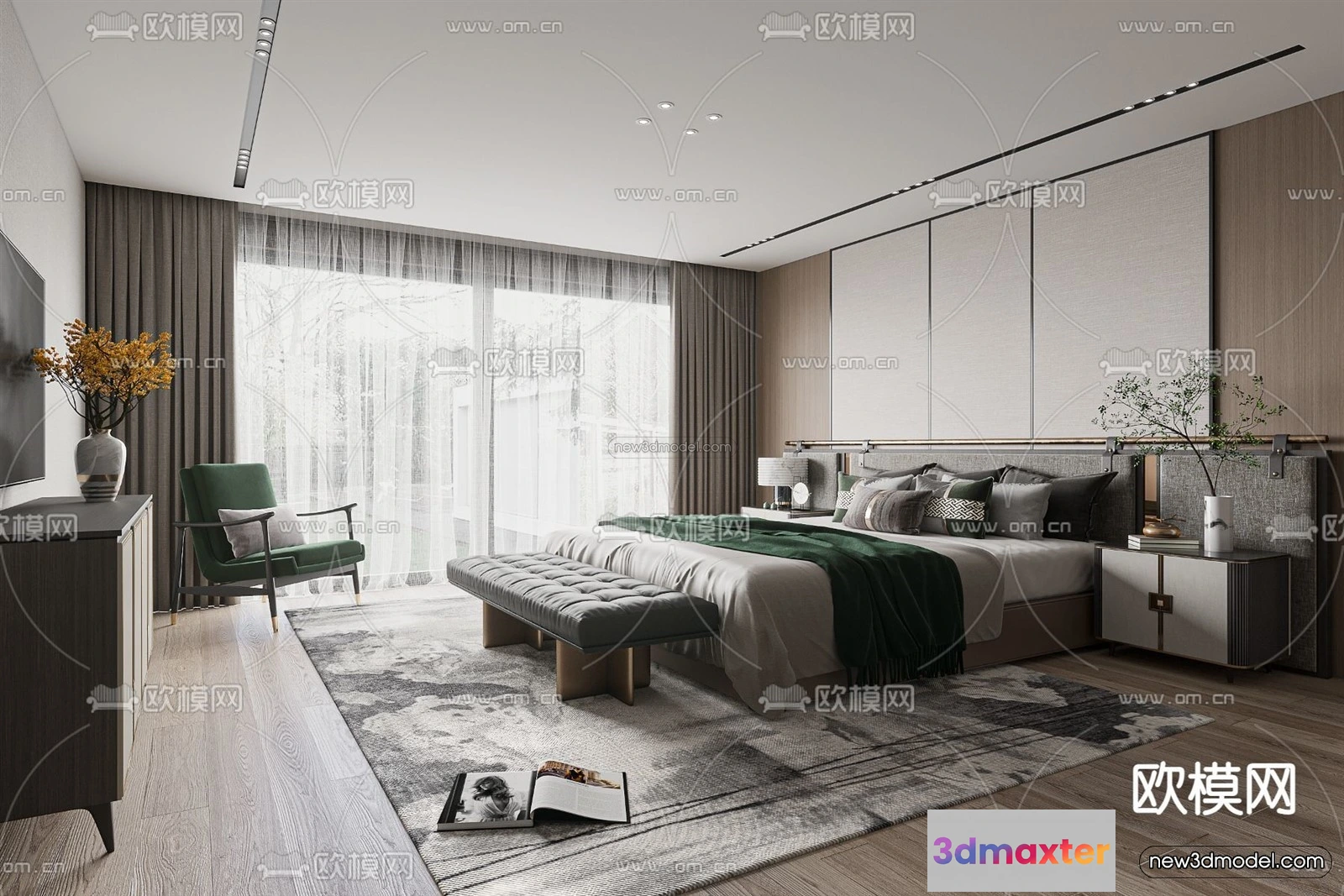 Modern Style Interior 3D Blocks – Bedroom 3D Model – 238 – Bedroom 3D Model – VRAY