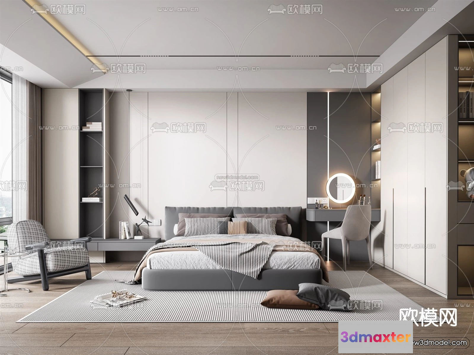 Modern Style Interior 3D Blocks – Bedroom 3D Model – 239 – Bedroom 3D Model – VRAY
