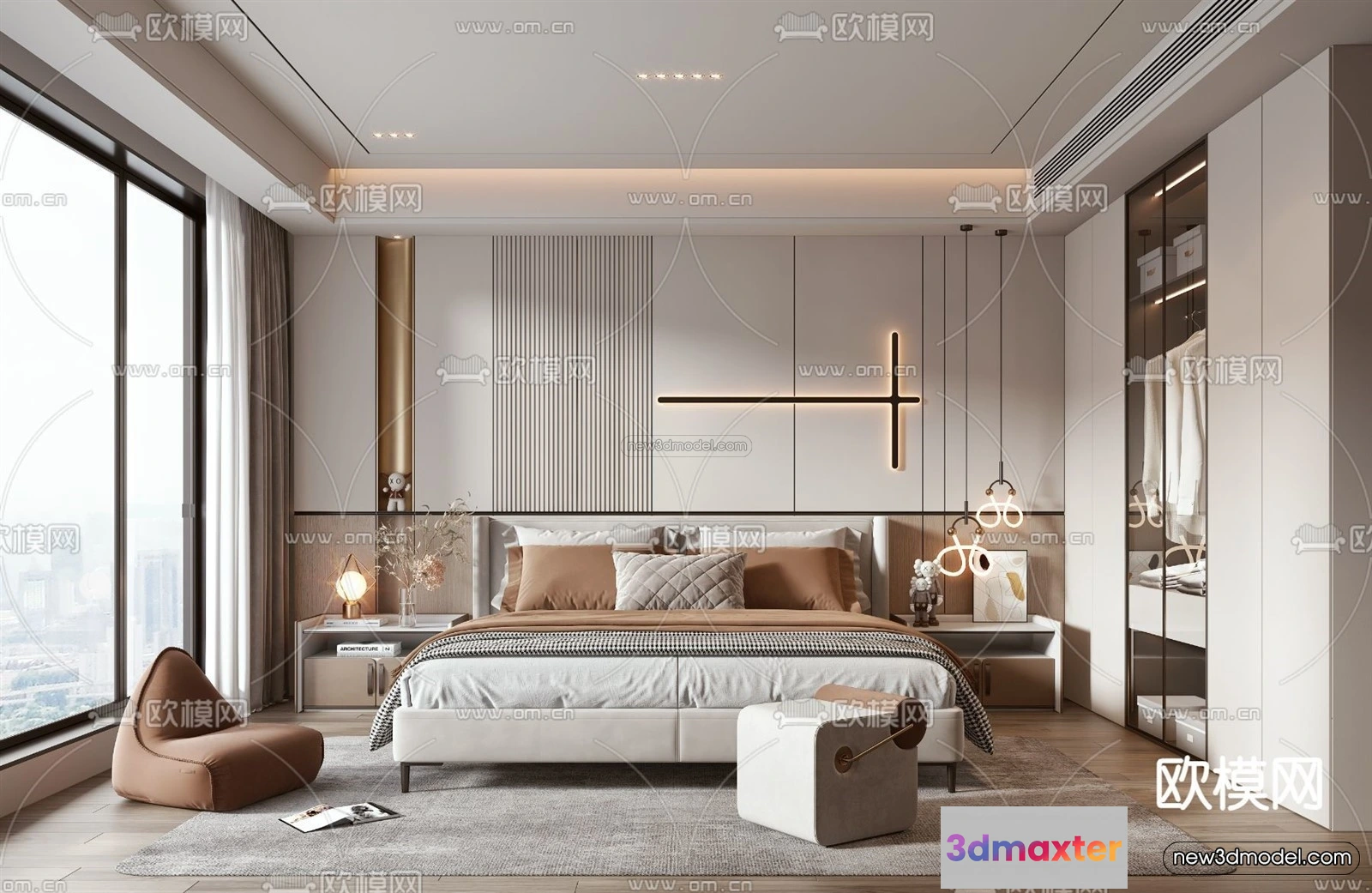 Modern Style Interior 3D Blocks – Bedroom 3D Model – 241 – Bedroom 3D Model – VRAY