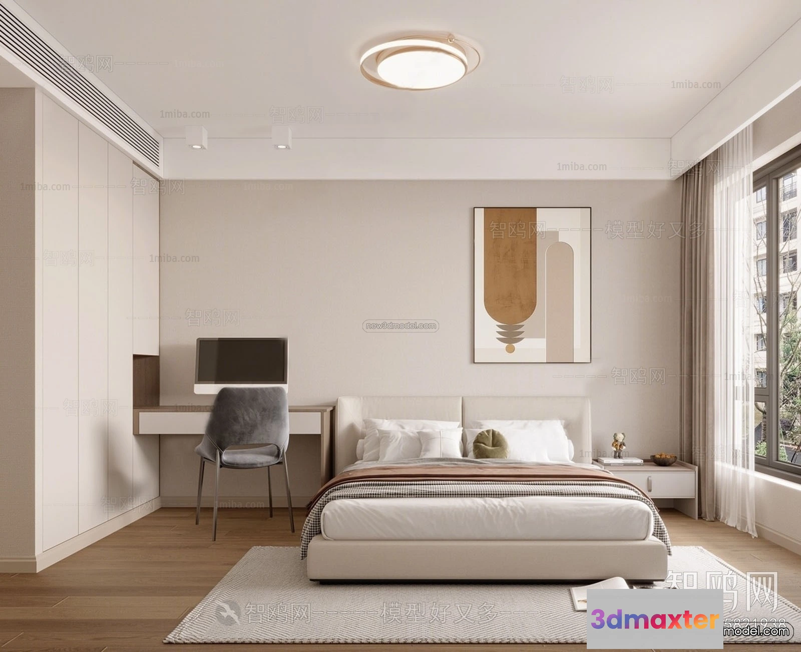 Modern Style Interior 3D Blocks – Bedroom 3D Model – 251 – Bedroom 3D Model – VRAY