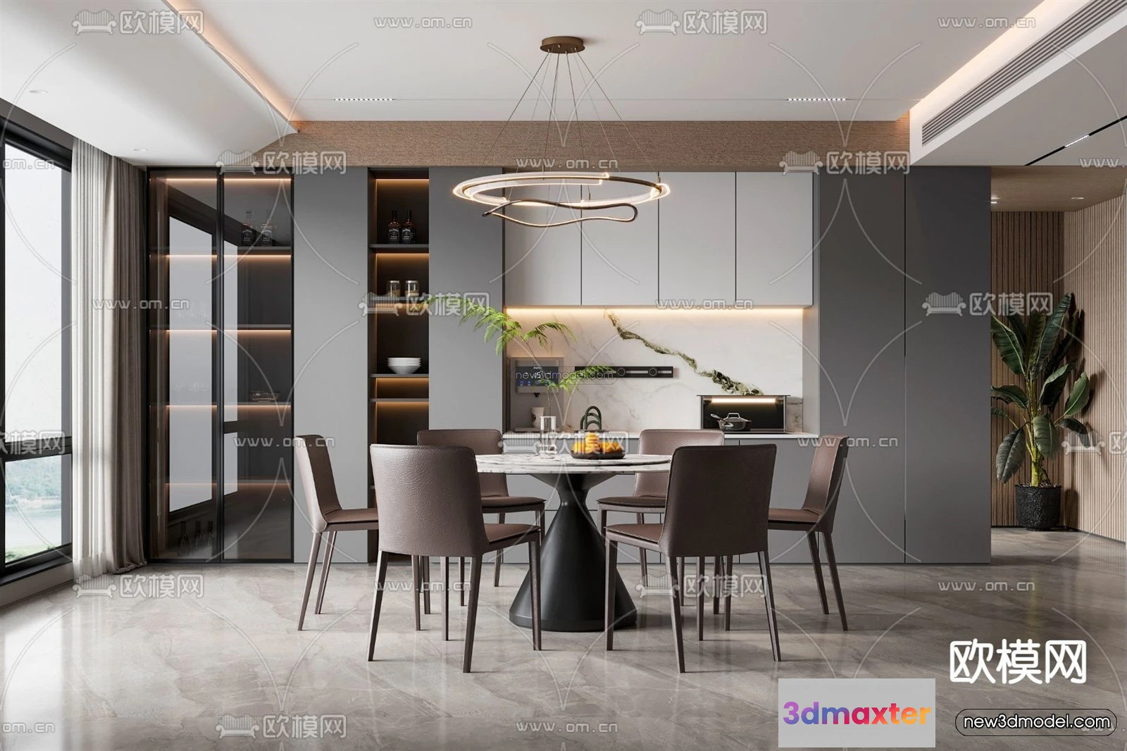 Modern Style Interior 3D Blocks – Dining Room 3D Model – 153 – Dining Room 3D Model – VRAY