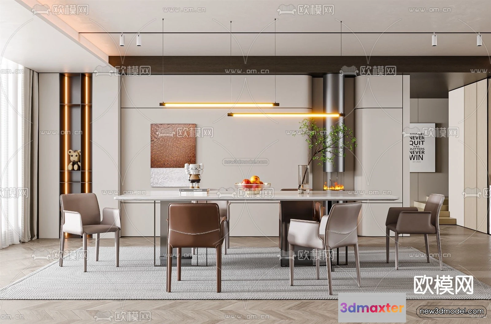 Modern Style Interior 3D Blocks – Dining Room 3D Model – 155 – Dining Room 3D Model – VRAY