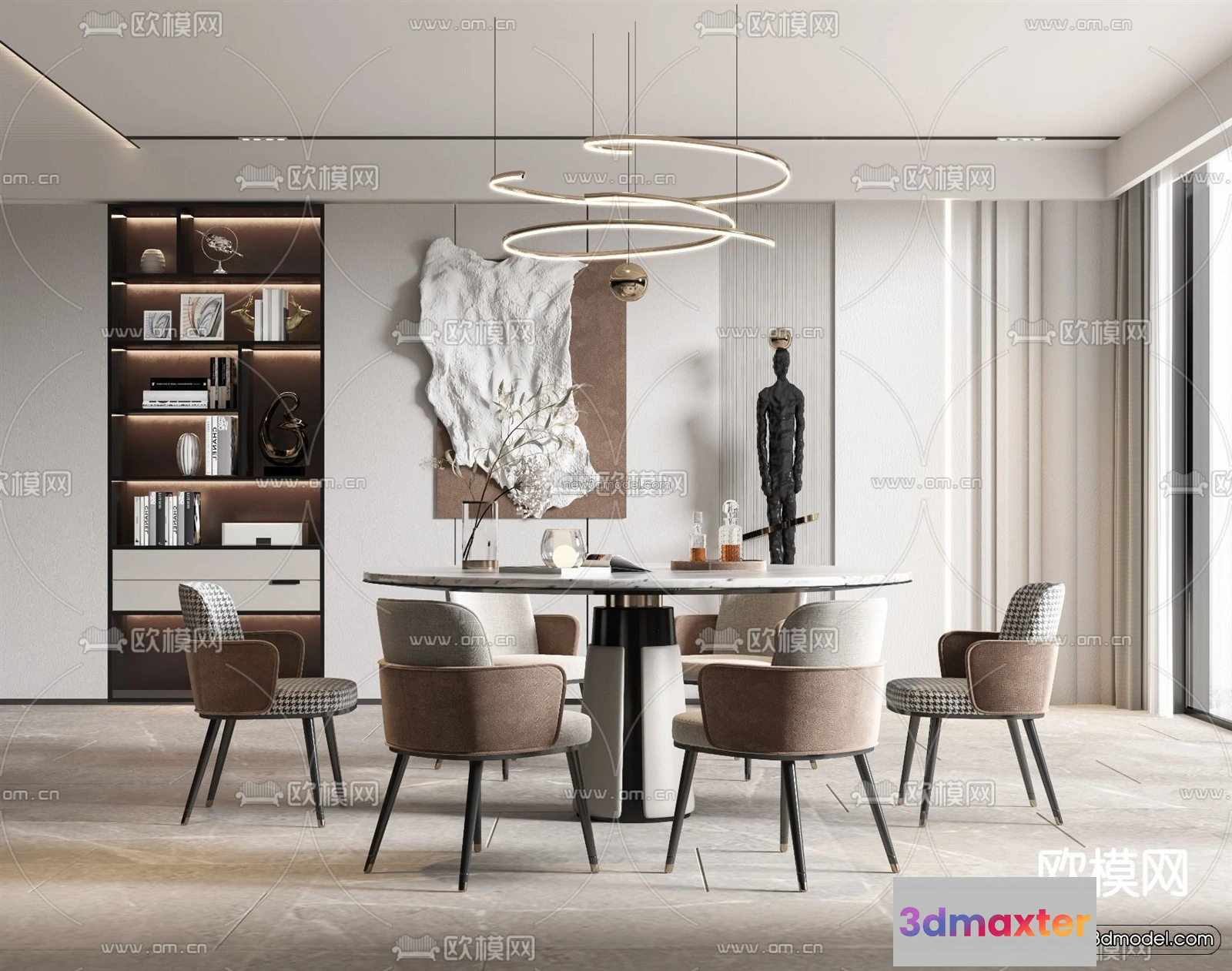 Modern Style Interior 3D Blocks – Dining Room 3D Model – 158 – Dining Room 3D Model – VRAY