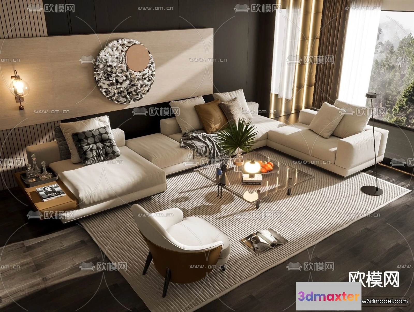 Modern Style Interior 3D Blocks – Living Room 3D Model – 002 – Living room 3D Model – VRAY