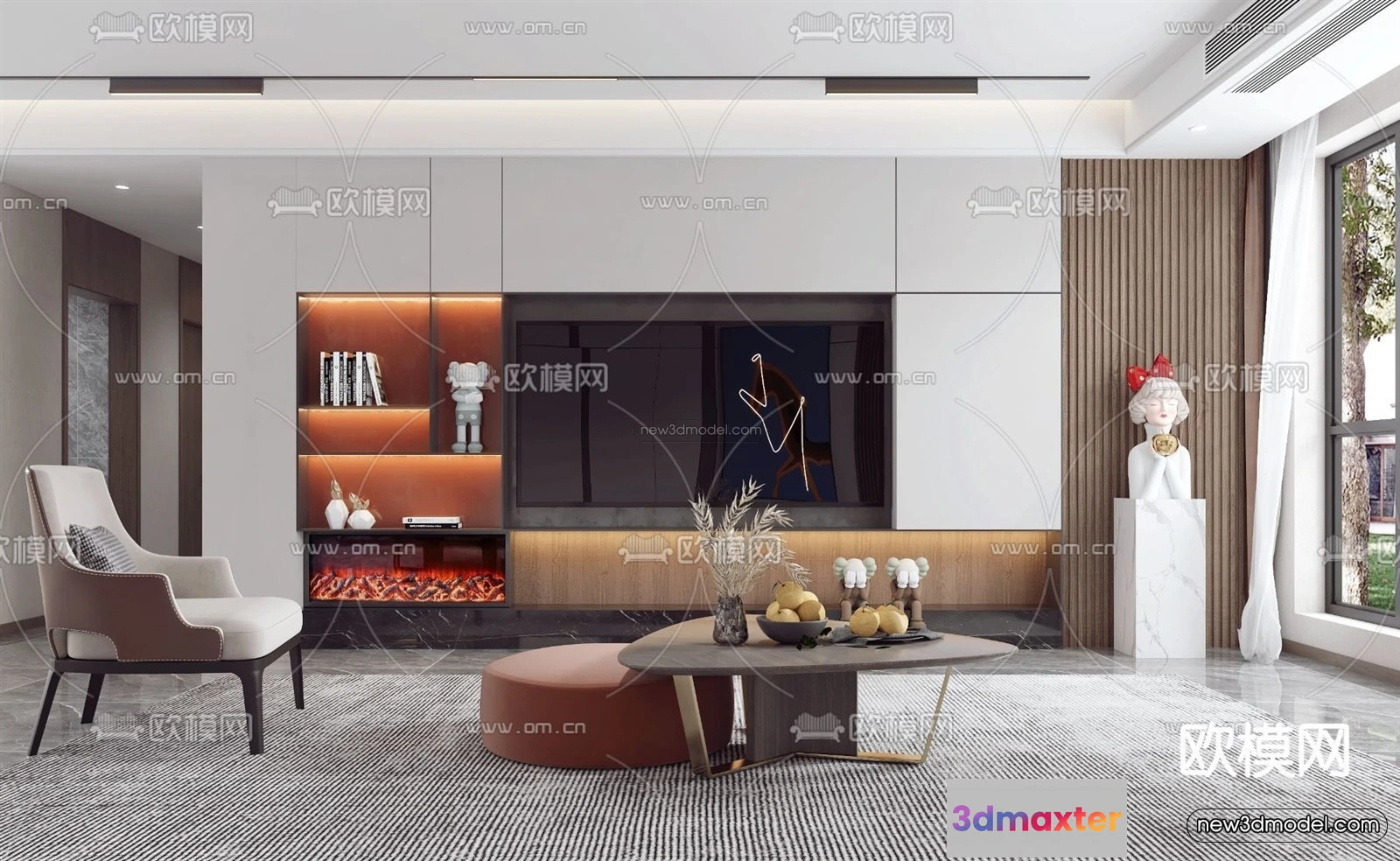 Modern Style Interior 3D Blocks – Living Room 3D Model – 014 – Living room 3D Model – VRAY