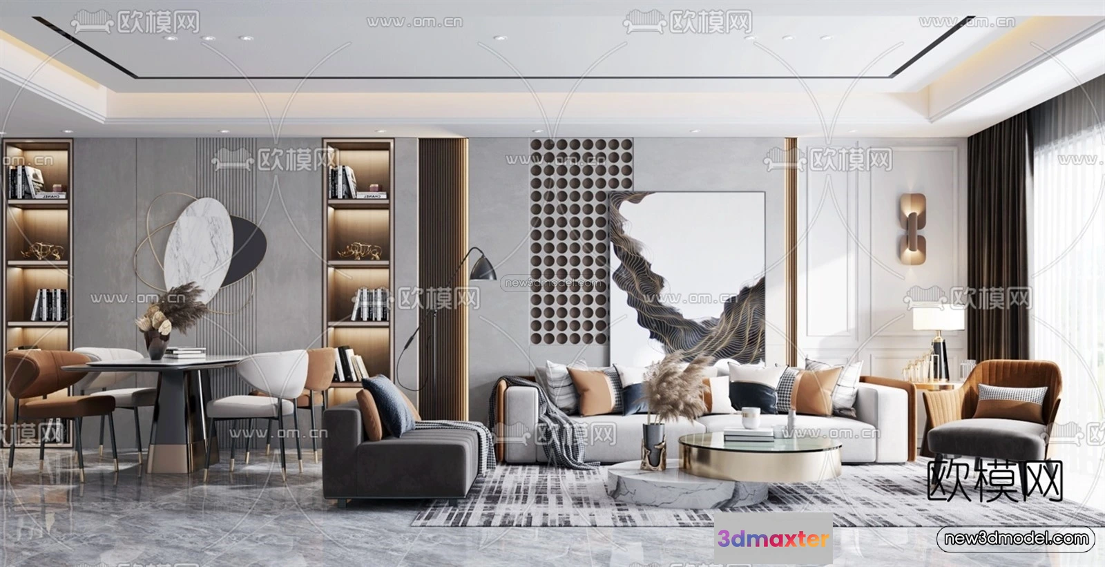 Modern Style Interior 3D Blocks – Living Room 3D Model – 036 – Living room 3D Model – VRAY