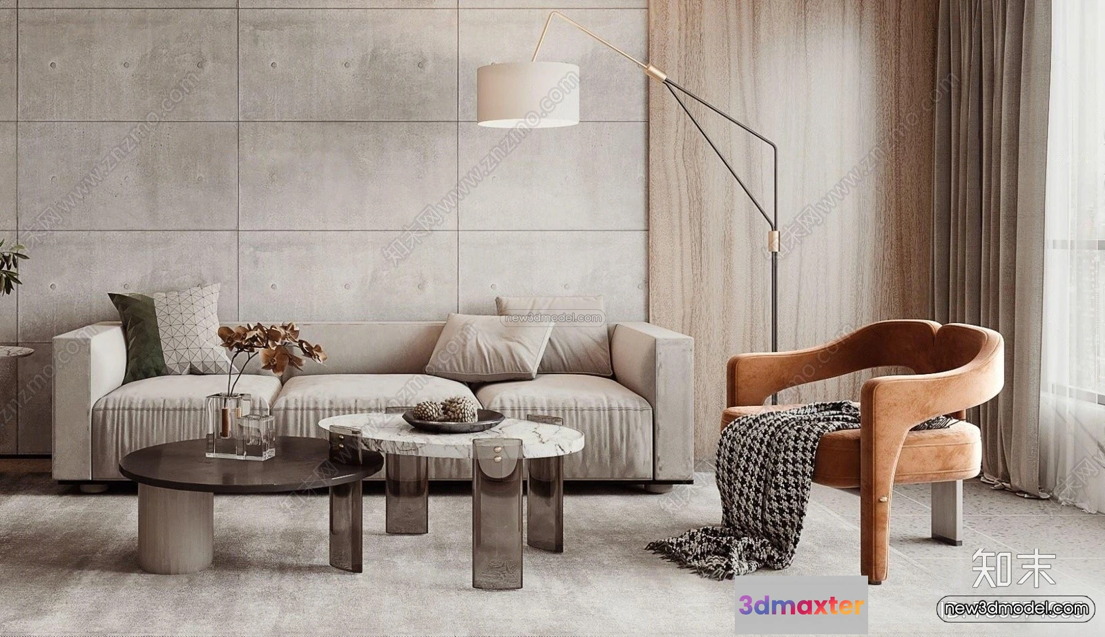 Modern Style Interior 3D Blocks – Living Room 3D Model – 051 – Living room 3D Model – VRAY